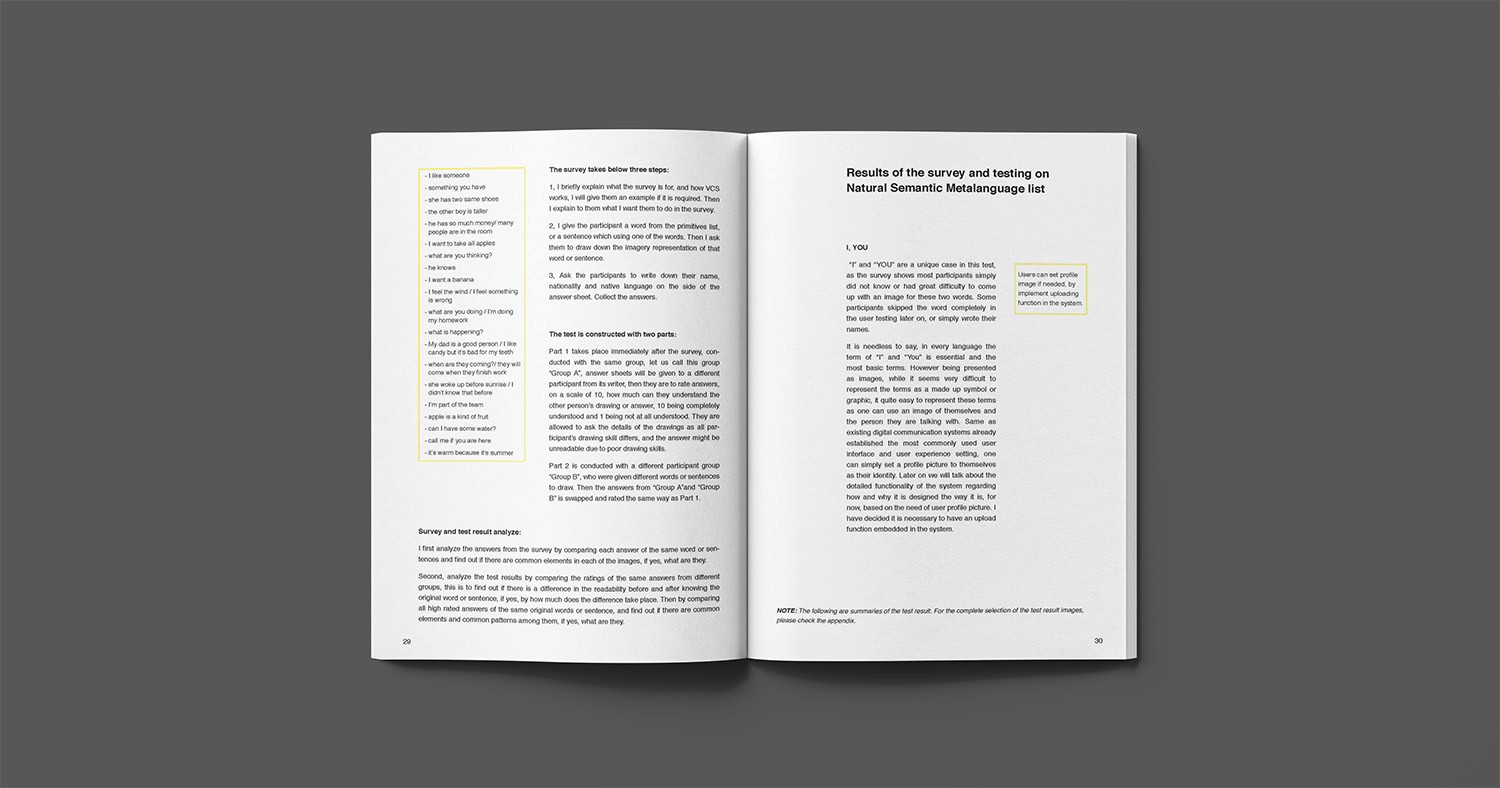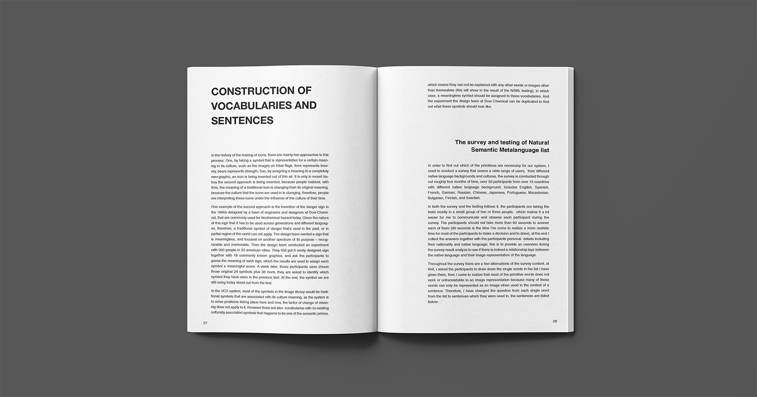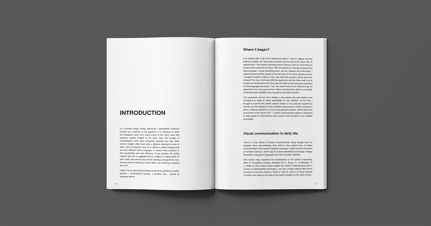 VCS — Visual Communication System, is a solo project designed to test and verify my Master's thesis topic: whether or not a pictograph language is more efficient when facing an environment of unable to speaking the local language when traveling or living abroad.